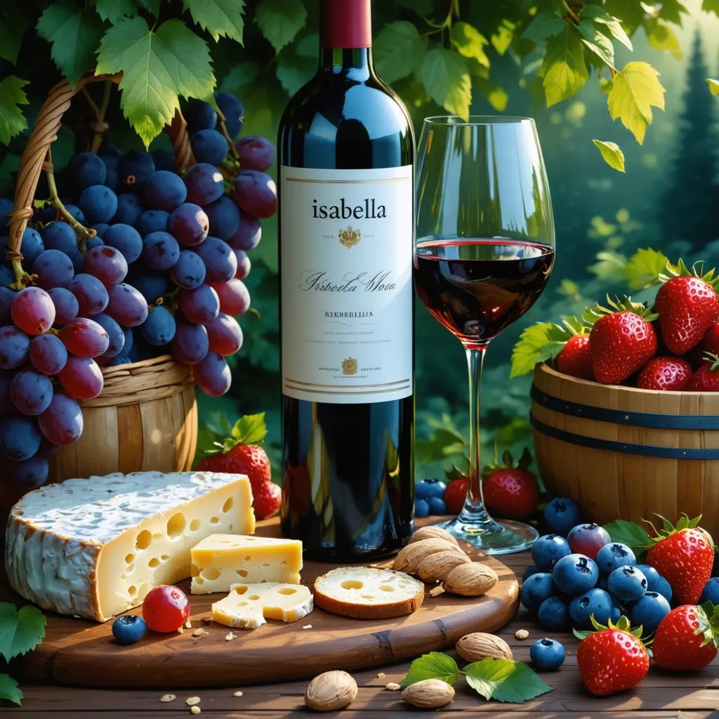 - Подавайте к изабелла вину блюда с кислинкой и легкой сладостью, например, сыры с голубой плесенью, ягоды или десерты на основе фруктов.